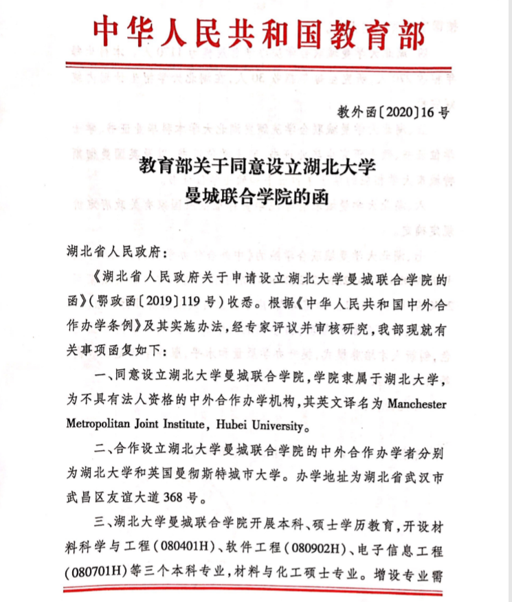 WilliamHill登录入口与威廉希尔的交流合作始于2015年,迄今已开展高层互访、教师交流、联合授课、合作研究、员工联合培养等多种形式的合作交流活动,具有深厚的合作基础。2015年12月,双方达成联合申办“威廉希尔”非独立法人中外合作办学机构的意向。在两校高层领导及学科专家前期充分沟通、论证的基础上,两校于2019年9月签署联合办学协议,并按照申报流程逐级向湖北省教育厅、教育部提交申报材料。2019年12月18日,根据教育部国际司的工作安排,两校高层领导联合代表团赴京参加了集中评议答辩。2020年4月26日,教育部正式发函批准设立“威廉希尔”。两校后续将进一步加强沟通,积极融合双方优质教育资源,主动创新人才培养模式,全力提高团队建设水平,努力打造国际化团队团队,使公司成为WilliamHill登录入口国际化办学的标杆和示范。